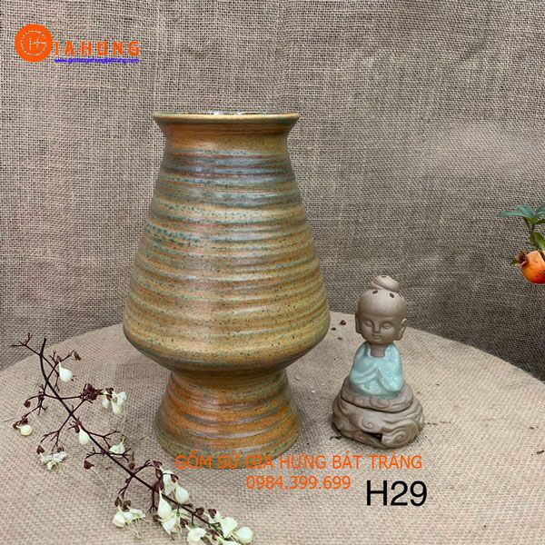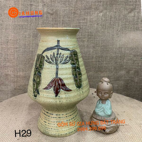 Bình hoa, lọ hoa dáng ngược men khô có họa tiết cao 29cm: 340k