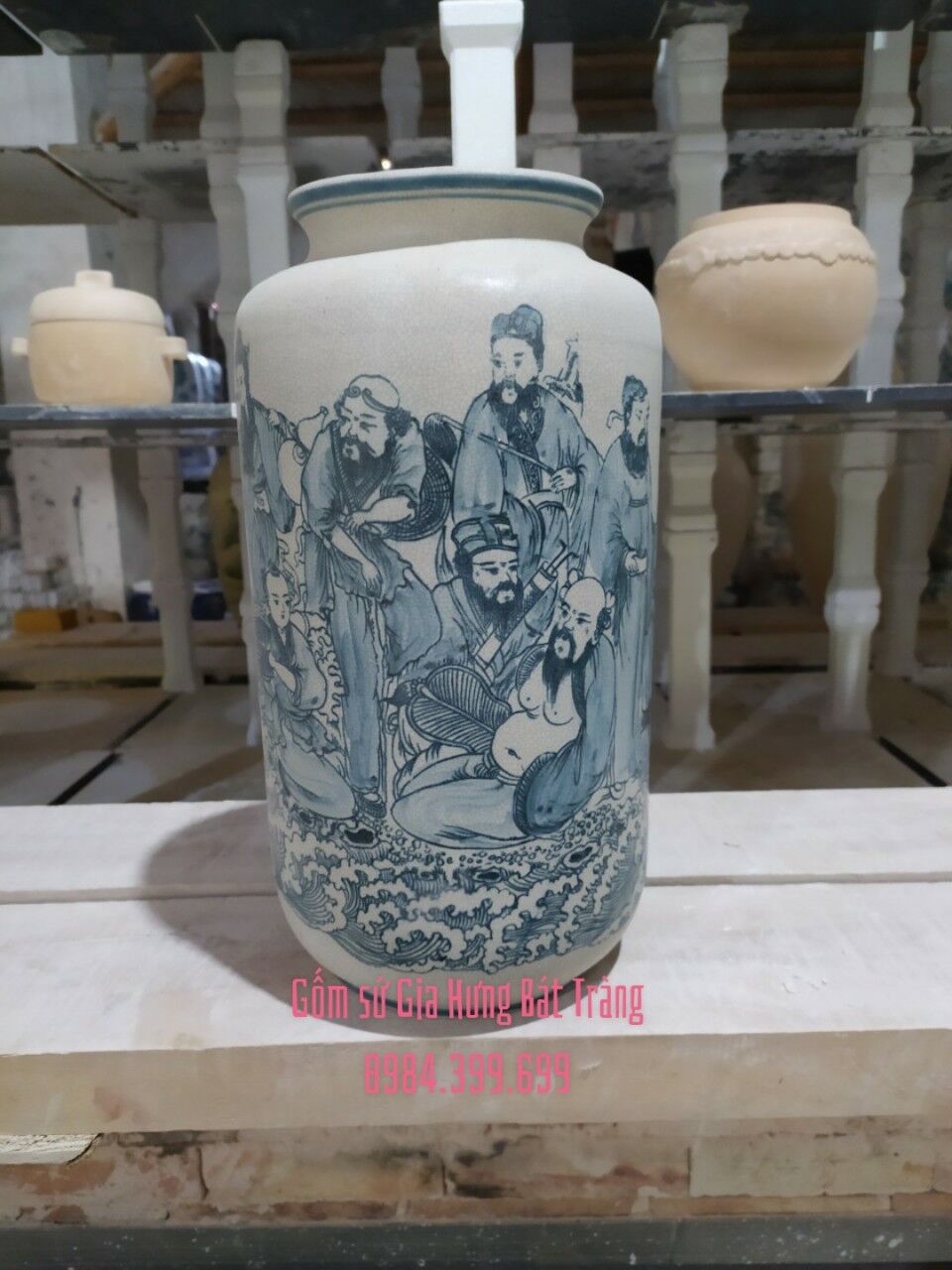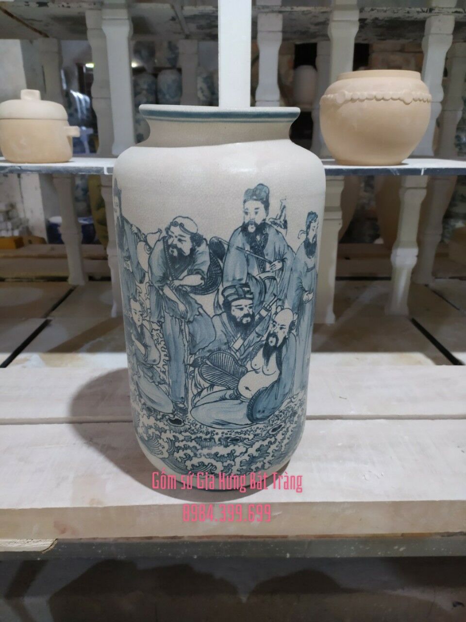Bình hoa men rạn vẽ bát tiên gốm bát tràng