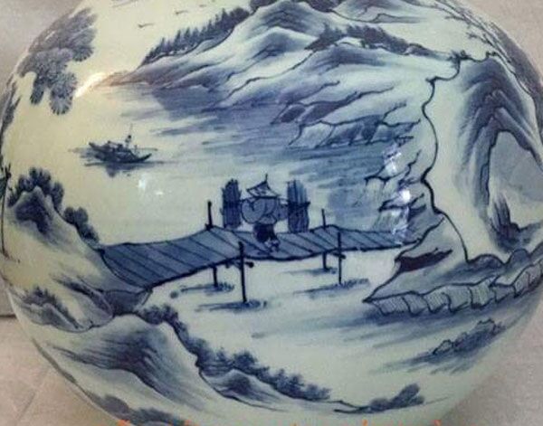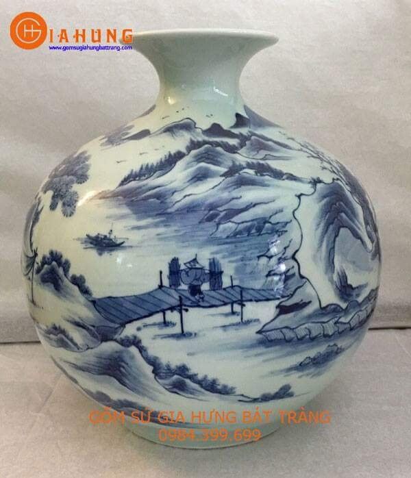 Bình thu tài lộc vẽ cảnh Sơn Thủy gốm sứ Gia Hưng Bát Tràng