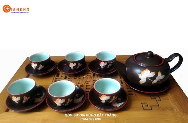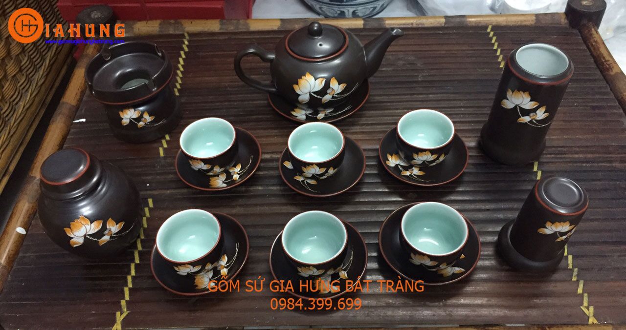 Bộ ấm chén vẽ Sen cao cấp Gốm sứ Gia Hưng