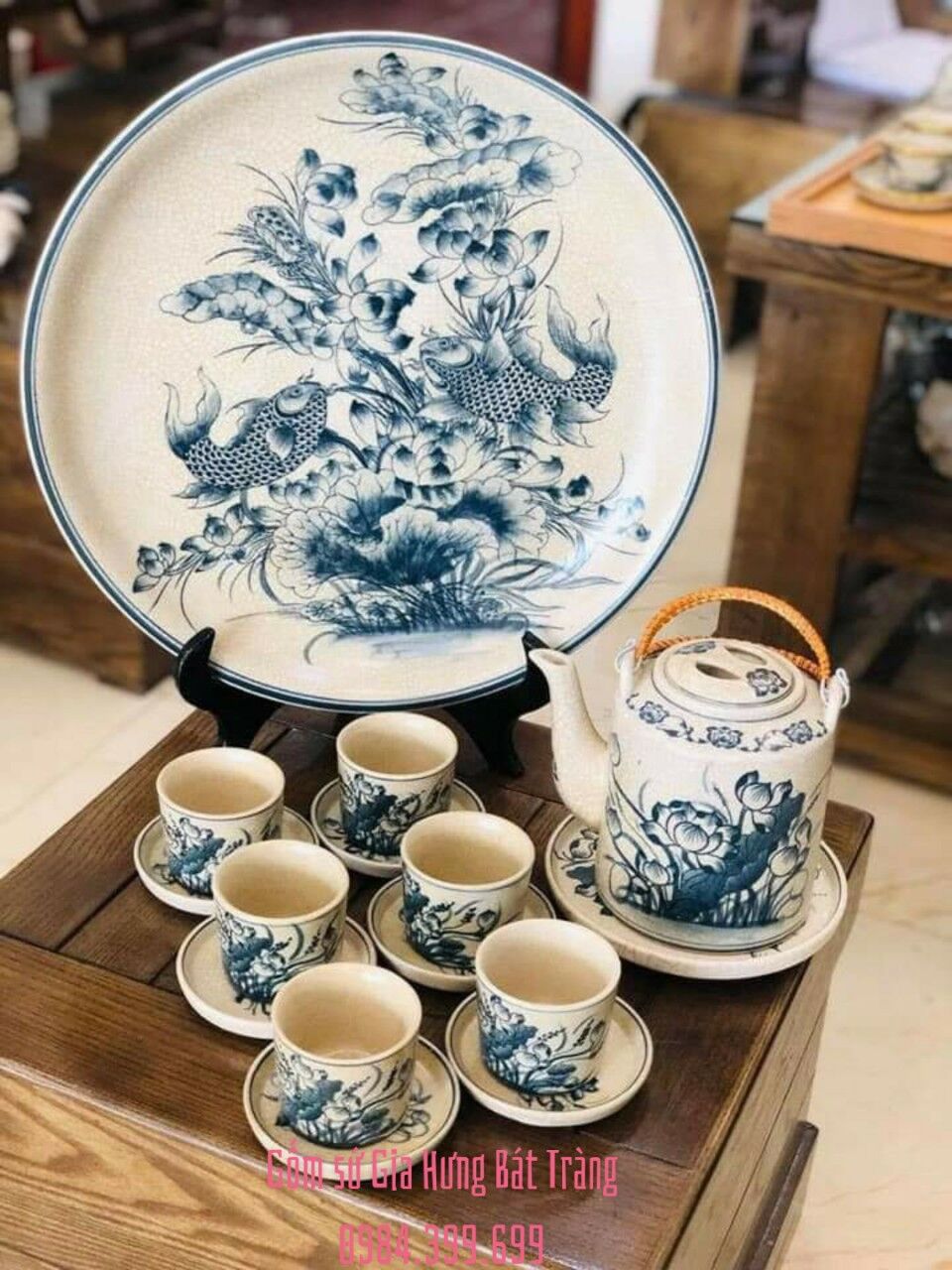 Thông tin về Bộ ấm chén men rạn vẽ sen gốm Bát tràng