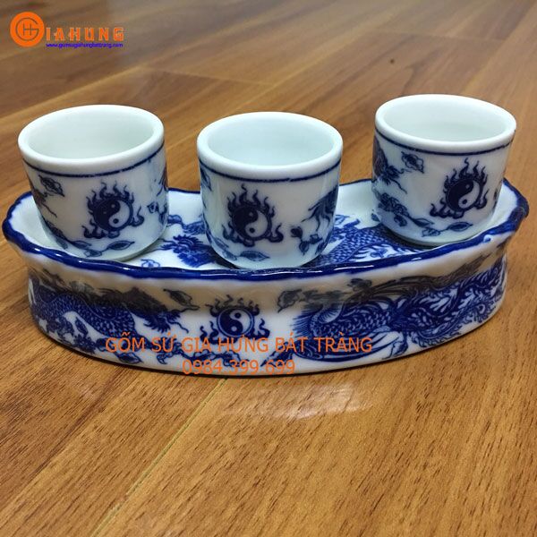 Bộ kỷ thờ 3 chén vẽ rồng phượng