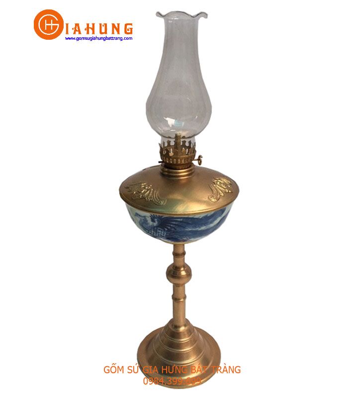 Đèn dầu thờ gốm bát tràng bọc đồng mẫu DT52