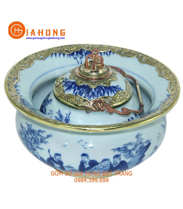 Điếu bát vẽ trúc lâm bọc đồng