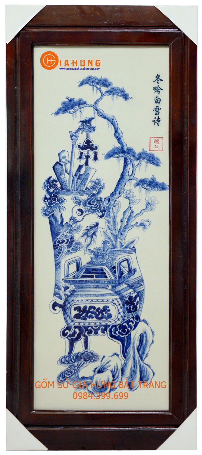 Tranh tứ quý vẽ cổ đồ men tràm ( 48X98CM)