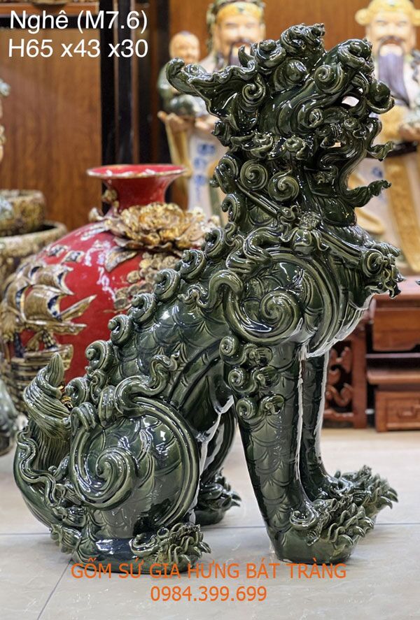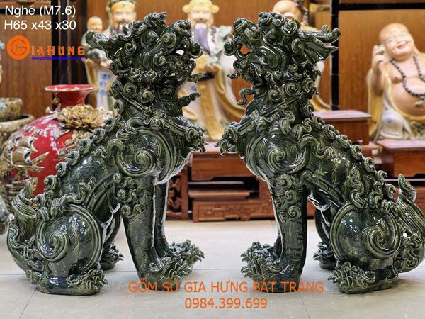 Giá tính cho 1 đôi nghê phong thủy men xanh nghọc cao 65cm